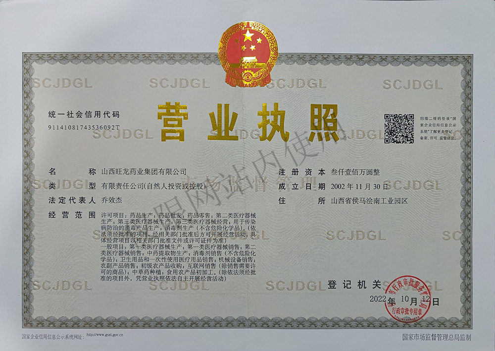 山西旺龍集團自成立于2002年,秉持“打造國藥精品,護航人類健康”的宗旨,歷經20余載的堅守與開拓,山西旺龍集團現已發展成為集中成藥研發與生產、中藥材種植加工與營銷、大健康產品開發與生產、連鎖藥店“四大版塊”于一體的大型藥企。設有旺龍藥業、德康元科技、晉康元農林種植、旺龍大藥房連鎖、旺龍國醫館、中康元電商部等子公司。